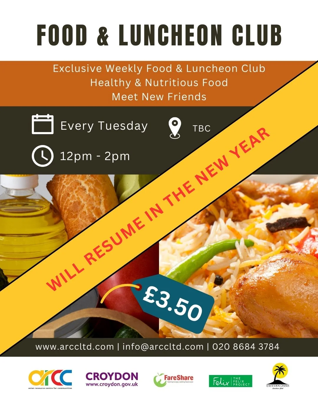 Please note that our weekly Food & Luncheon Club will be closed until further notice.